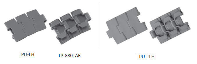 - 曲線輸送用塑鋼頂板鏈條標準型,結構簡單、清洗方便